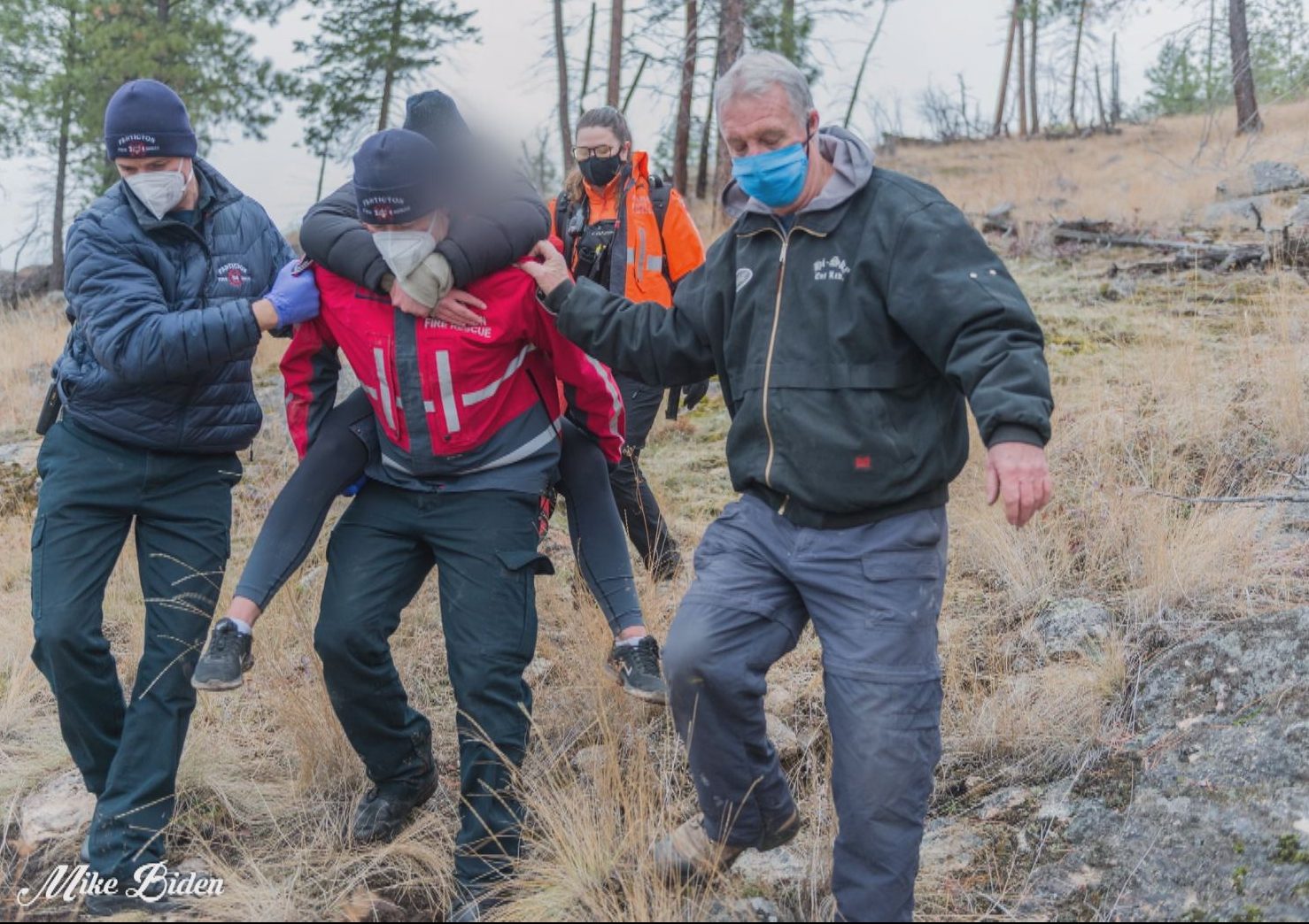 Search manager Randy Brown said rescuers got a call from B.C.’s emergency coordination centre on Nov. 22, just before 2 p.m. after a 21-year-old woman hurt her leg on a hike in the Upper Wiltse Flats area east of Penticton, B.C.