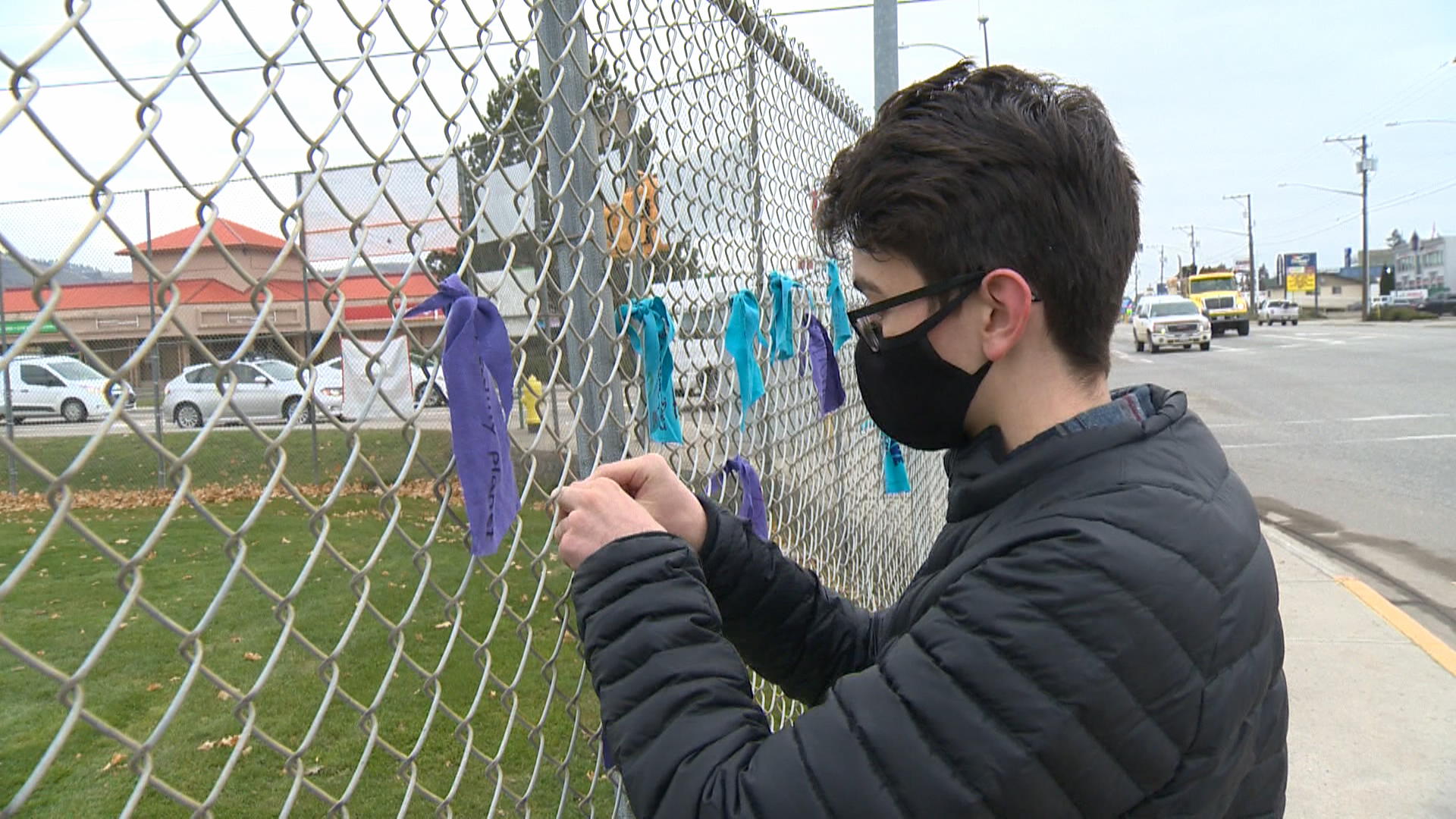 Student activists hung up flags on the chain-link fence of W.L. Seaton Secondary in hopes of a greener future in Vernon.