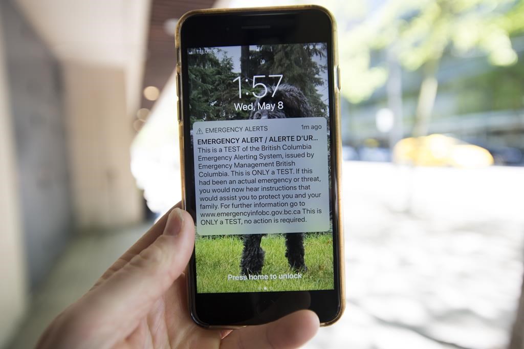 A test of B.C.’s wireless alerting system took place Wednesday afternoon as part of the national Alert Ready system, which is meant to improve public safety in the event of an emergency.