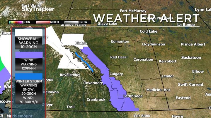 In parts of the mountain regions between Jasper and Lake Louise, a winter storm warning was in effect.