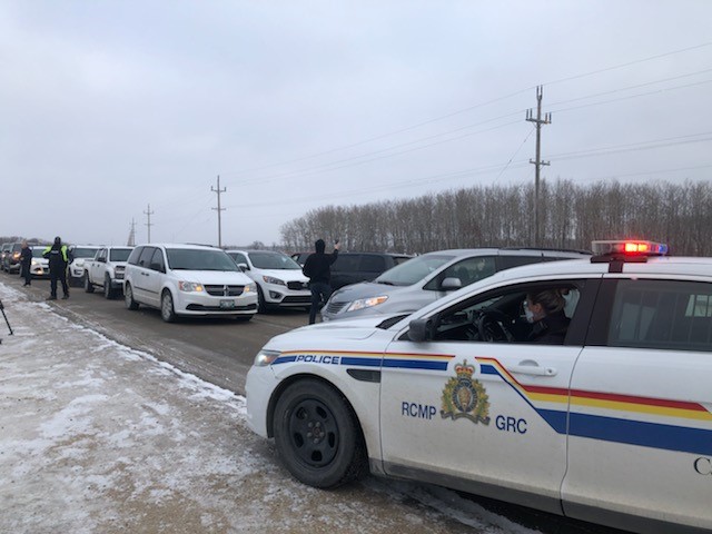 Global News reporters on the scene heard RCMP officers telling people if they walk into the parking lot toward the Church of God Restoration, which is south of Steinbach they will be fined.
