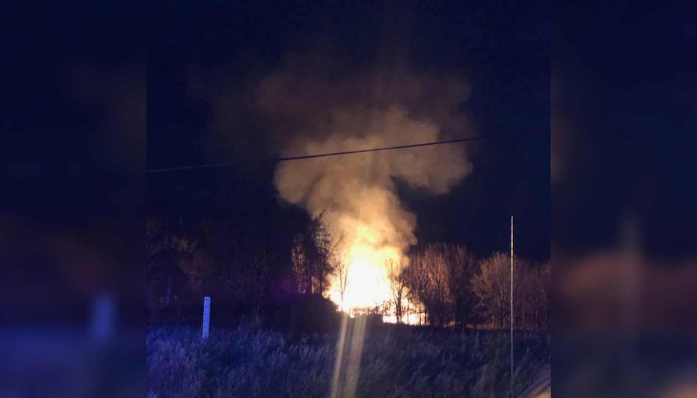 Police said the barn was fully engulfed in flames and is considered a total loss, though a damage estimate was not provided.