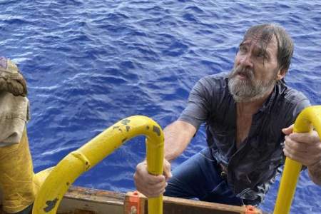 Soaking wet, tired and hungry, the 62-year-old clambered up onto the deck of the cargo ship Angeles on Sunday morning, in a happy ending to a harrowing experience at sea.