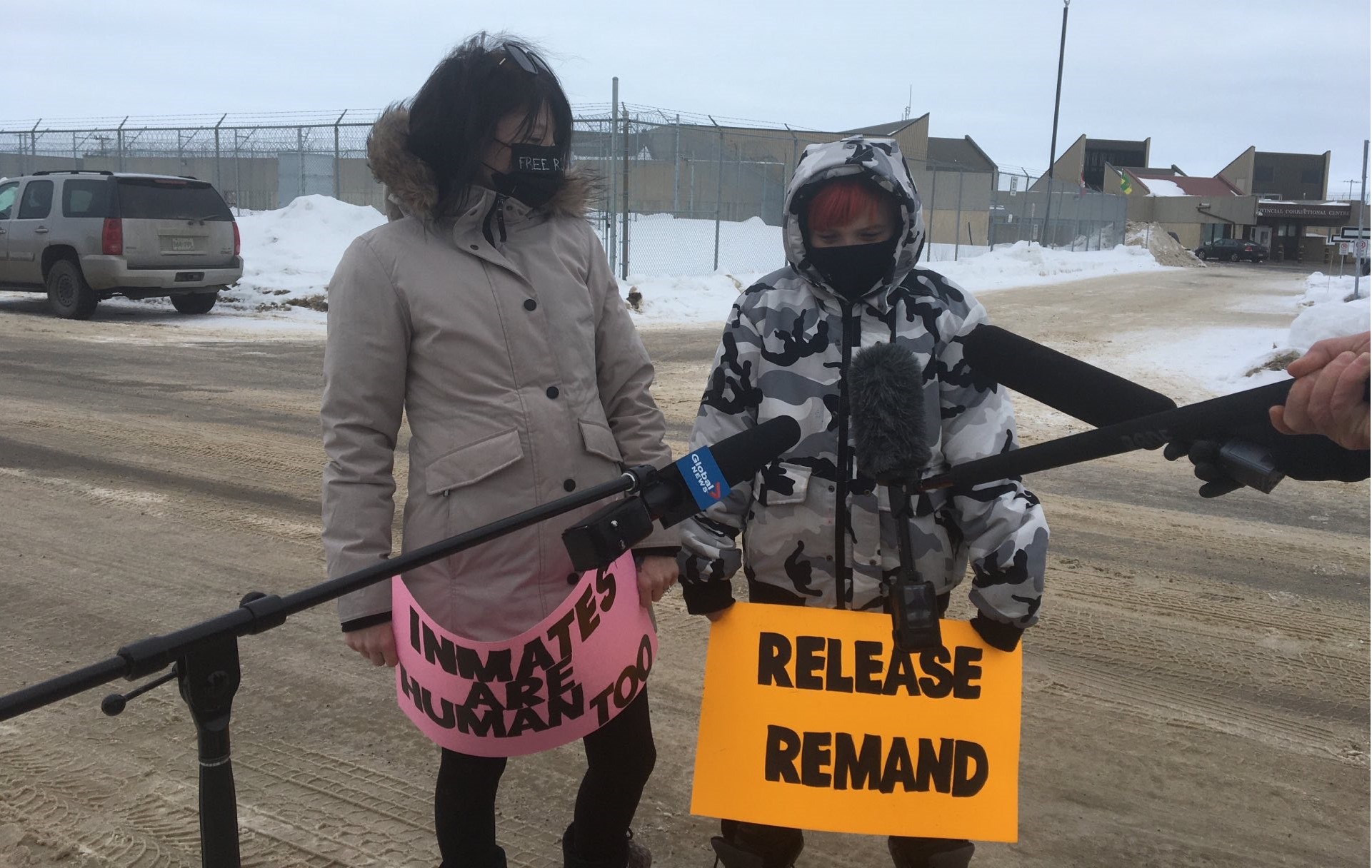 A few protesters gathered Tuesday in the fresh air outside of the Saskatoon Correctional Centre as their loved ones sat inside, in a hotbed of COVID-19.