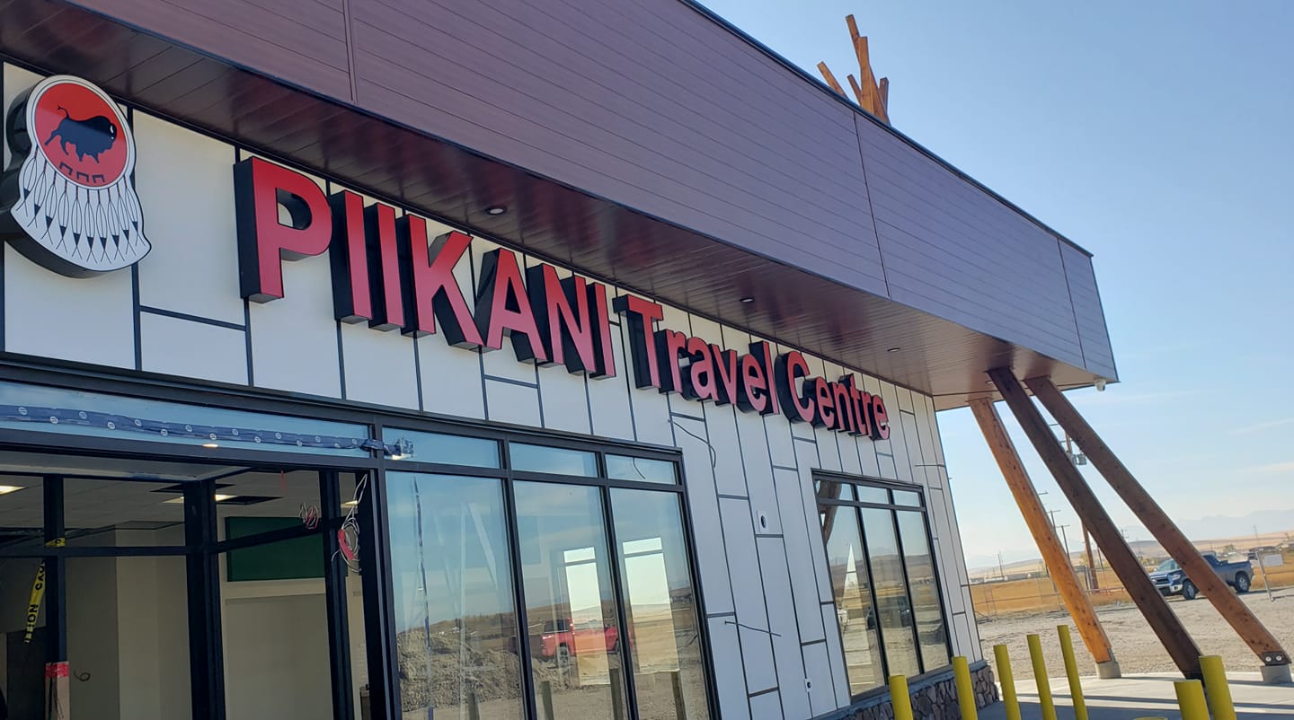 Located off Highway 3 in Brocket, Alta., the Piikani Travel Centre started welcoming shoppers on Friday, following more than a year of construction and delays due to the COVID-19 pandemic.