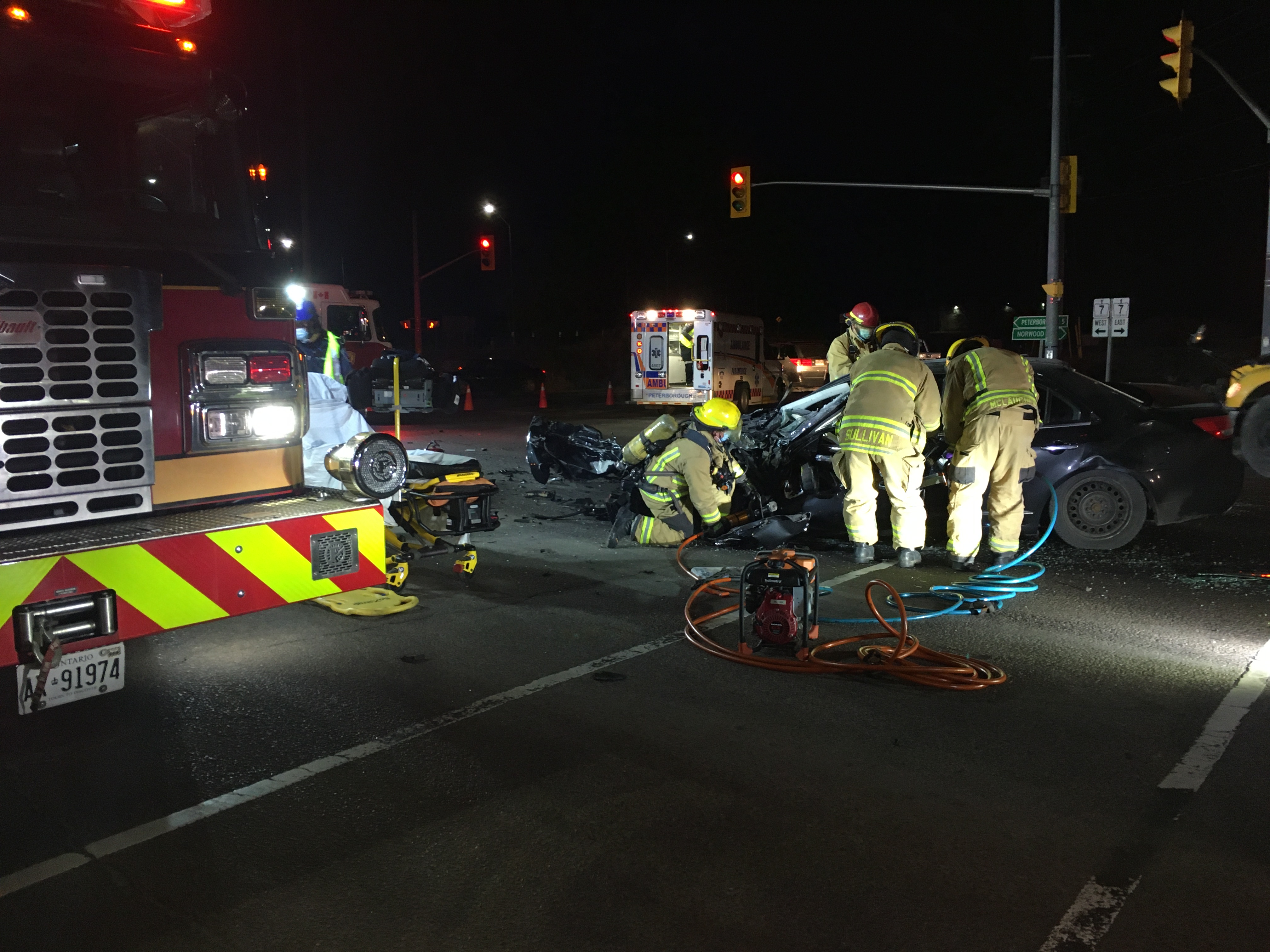Peterborough firefighters used extraction equipment to extricate the man from the wreckage before he was treated by paramedics and taken to Peterborough Regional Health Centre.