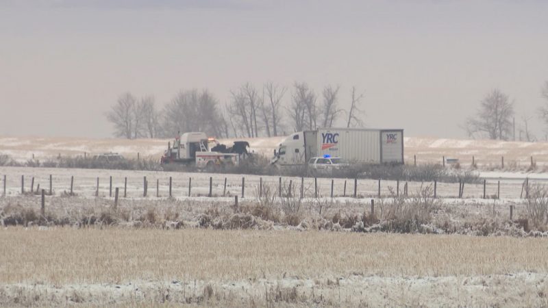 RCMP said a westbound semi-trailer and eastbound car collided between Highway 797 and Highway 24, east of Indus, at around 7:30 a.m.