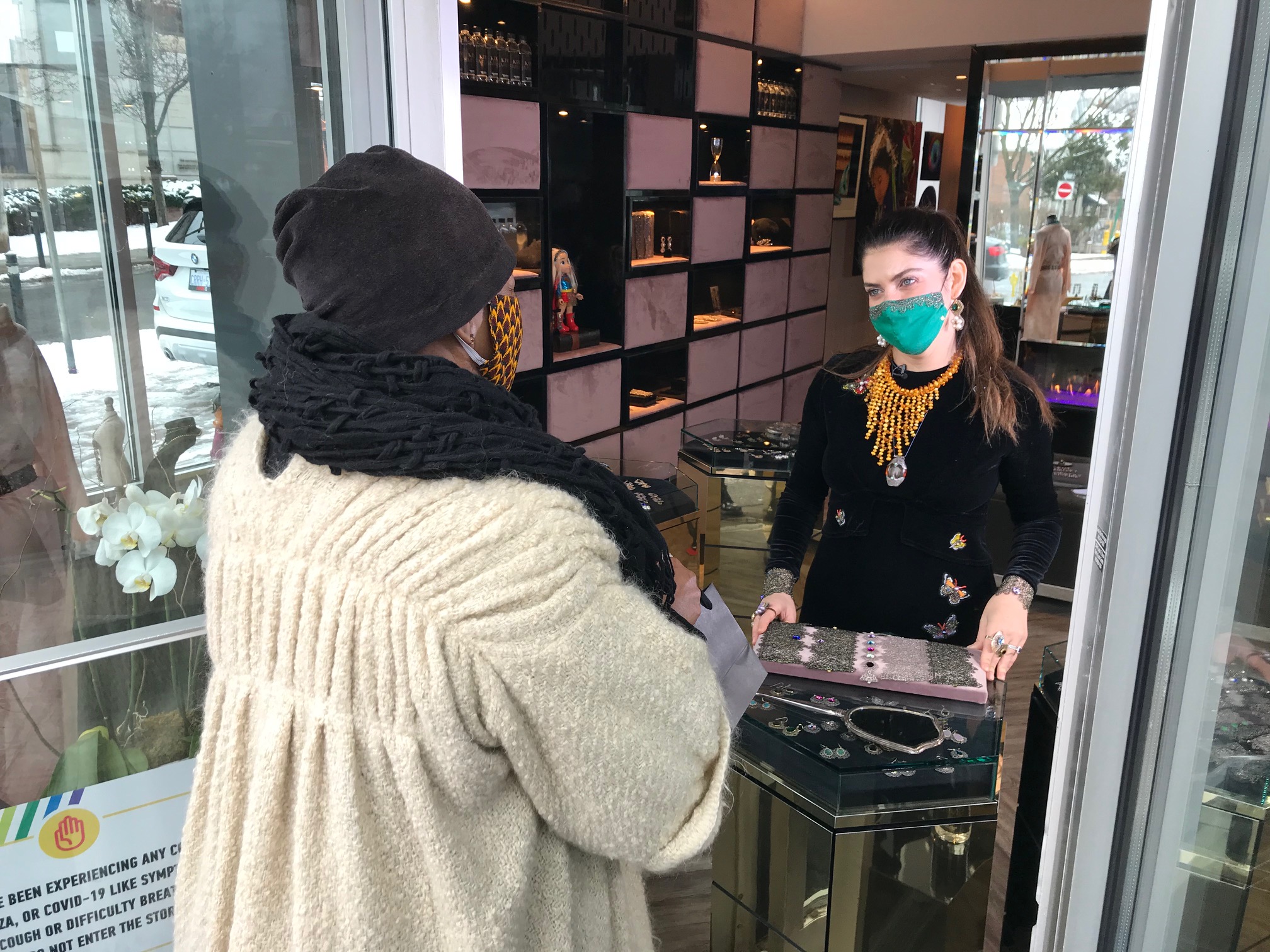 Unable to have customers in her store due to COVID-19 restrictions in Toronto, the fashion activist is now offering personalized window shopping sessions instead — door open or closed, at the customer’s preference.