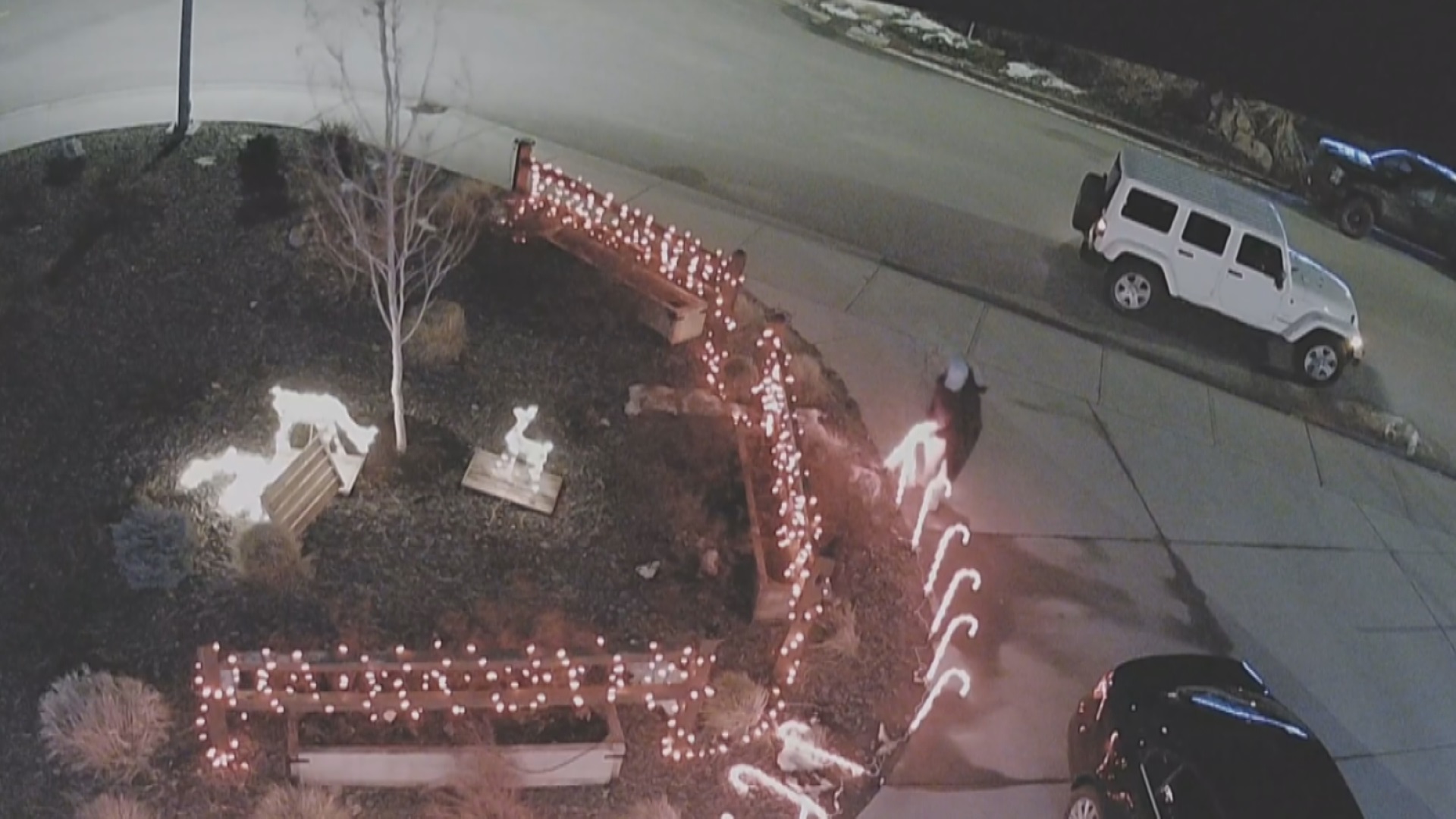 Surveillance video outside the home of West Kelowna resident Greg Herron shows what appears to be a woman stealing Christmas decorations from his front yard.
