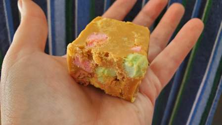 The seller was offering bags of white mini marshmallows for $8, bags of coloured ones for $10 a bag and packages of butterscotch chips for $20.