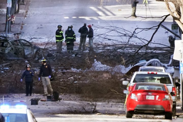The motor home, parked on a downtown street of Tennessee’s largest city, exploded at dawn on Friday moments after police responding to reports of gunfire noticed it and heard an automated message emanating from it warning of a bomb.