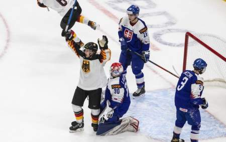 Despite dressing just five defencemen and nine forwards, Germany outshot the Slovaks 32-25.