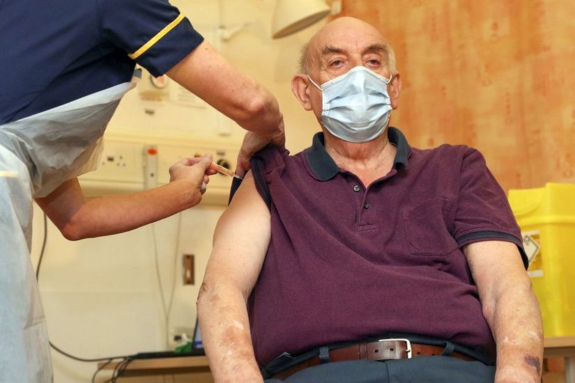 Dialysis patient Brian Pinker, 82, was the first to get the new vaccine shot, administered by the chief nurse at Oxford University Hospital. Pinker said he was so pleased and that he can “now really look forward to celebrating my 48th wedding anniversary with my wife Shirley later this year.”