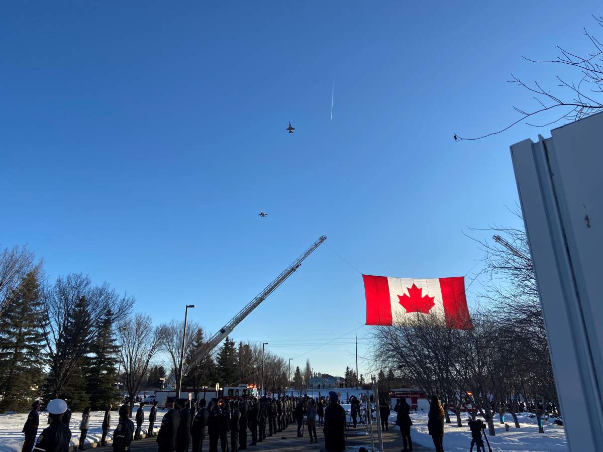The flypast was to pay respect to Harnett and honour his service and sacrifice in protecting Canadians and citizens of Calgary, both as a member of the Calgary police and a former member of the Canadian Armed Forces.