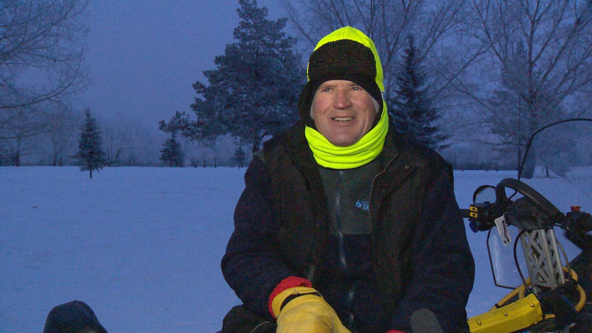 He drove a snowmobile and dragged a groomer behind, completing the route several more times before 10 a.m.