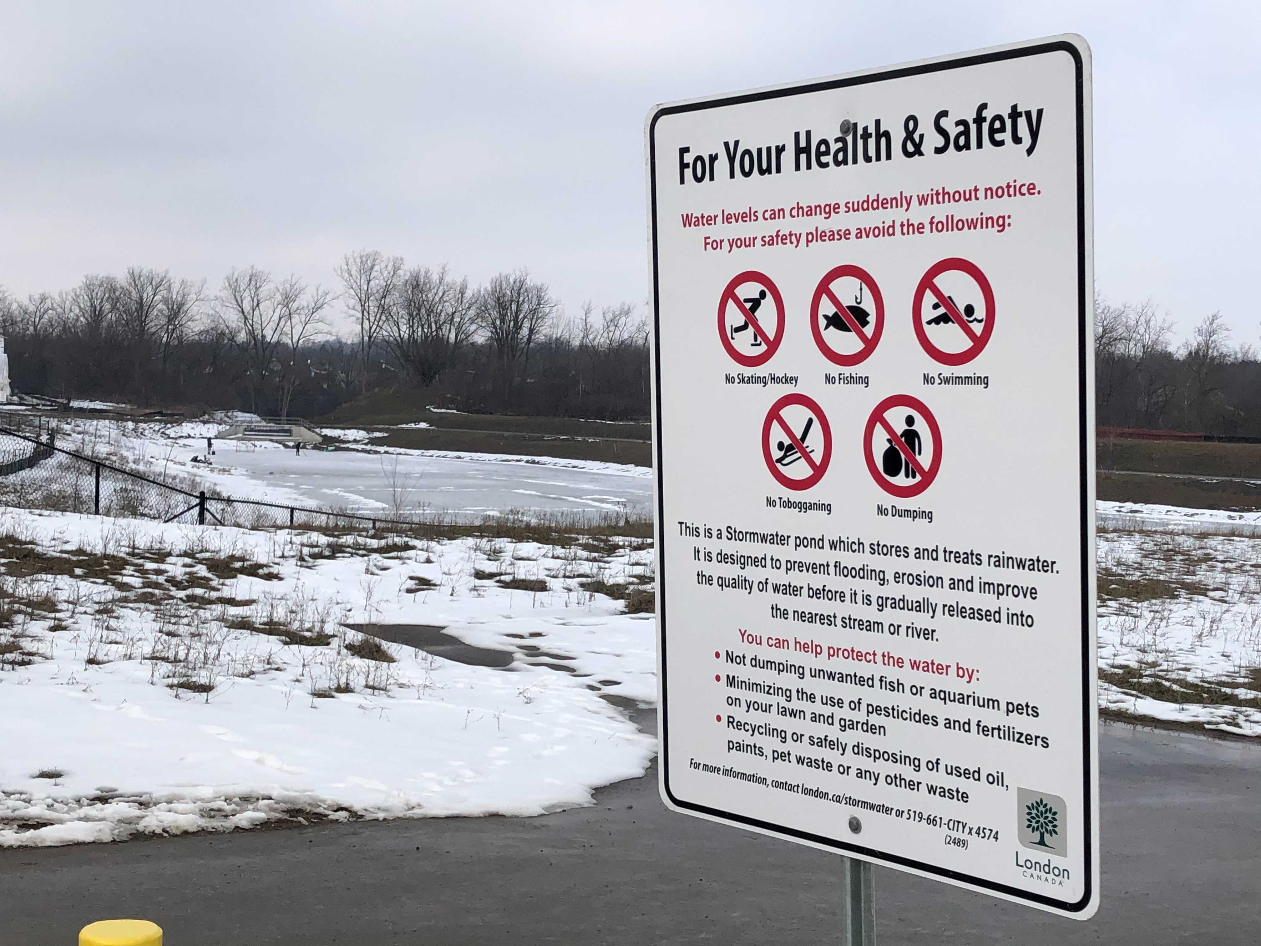 As people look for ways to keep busy outdoors through the winter months, the city of London is reminding residents that stormwater ponds are not the place to do so.