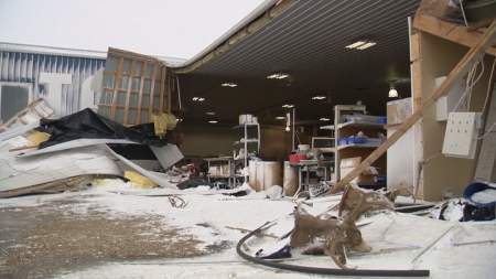 Many buildings across Saskatchewan suffered damage during Wednesday night’s wind storm and that includes one business south of Regina.