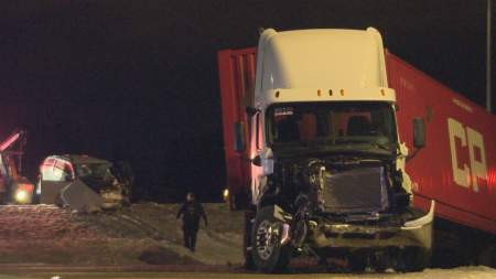 At least two vehicles were involved, including a semi and a van.