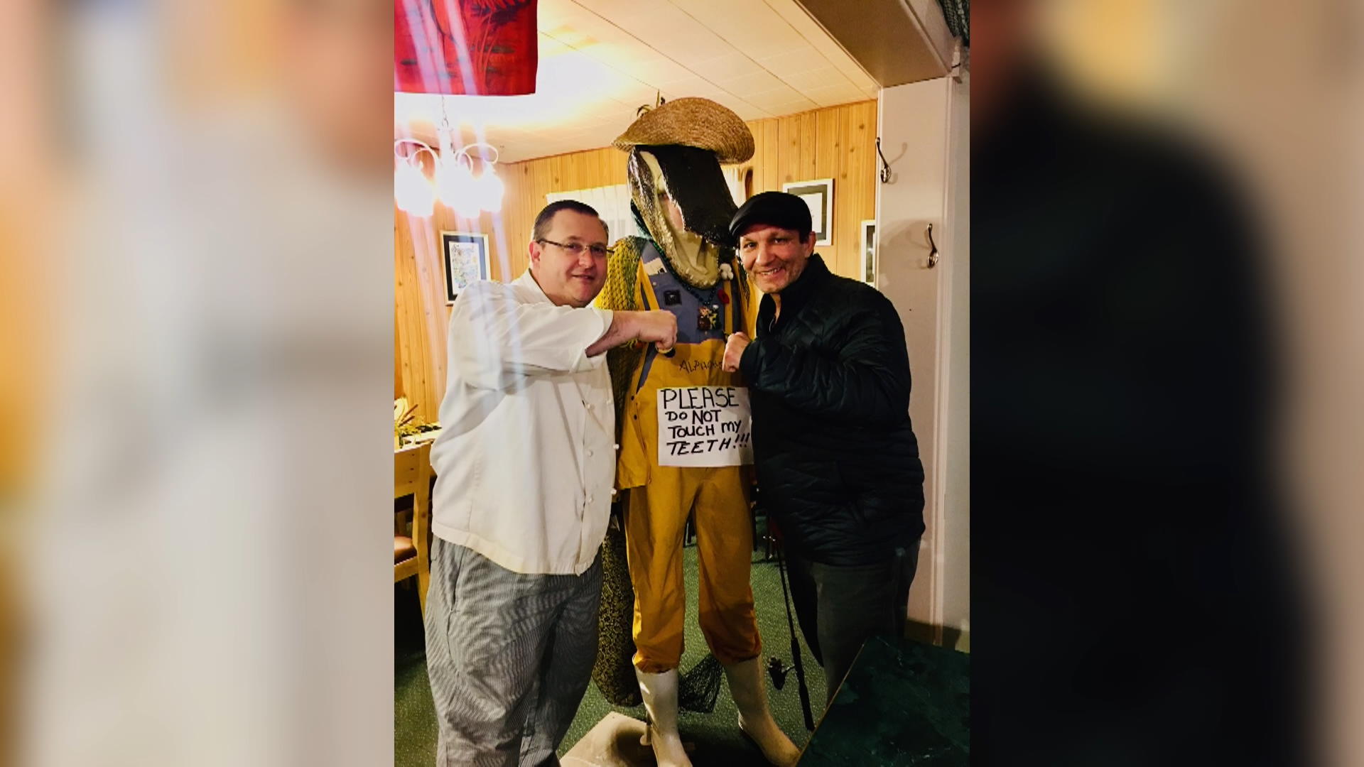 There is also a mascot in the restaurant — “Alphonse.” People are invited to check him out and take their picture with him. They even have some photos of people and Alphonse in the foyer.