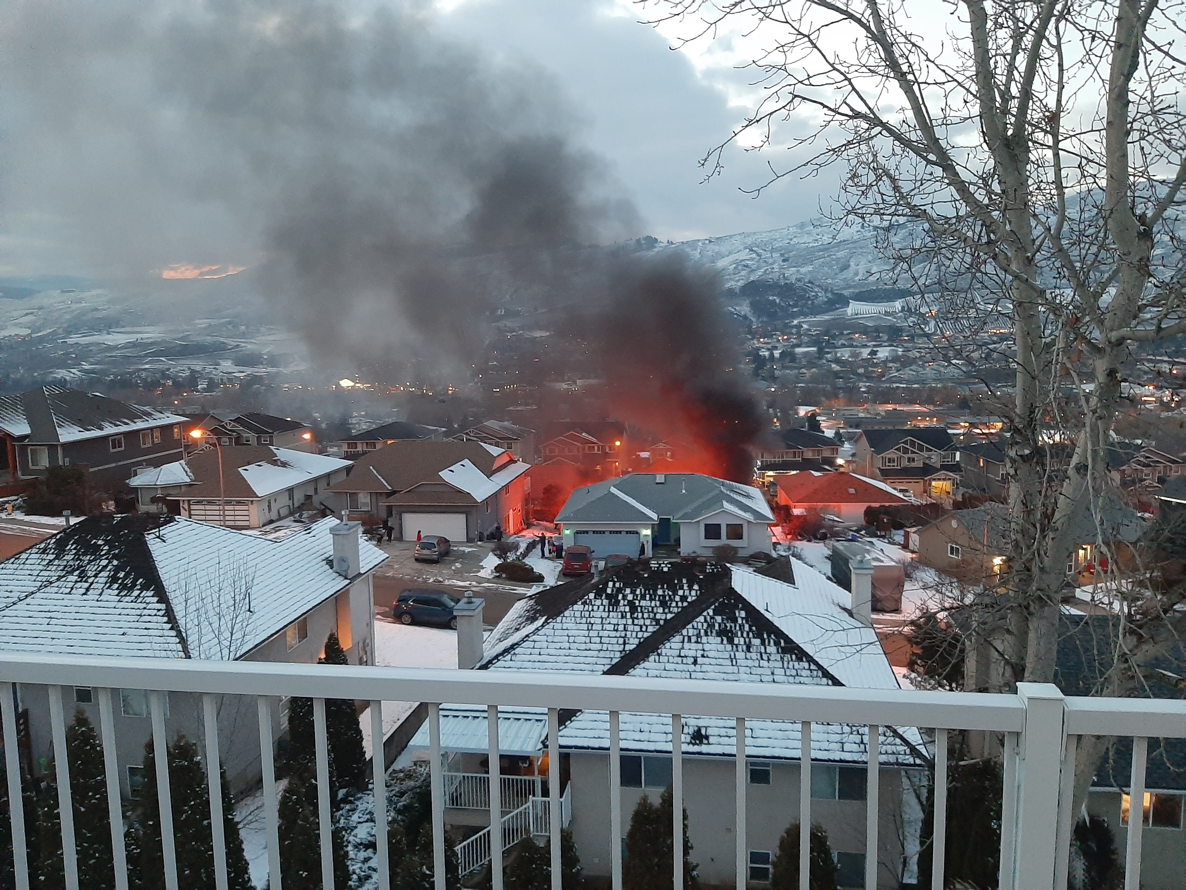 Flames broke out shortly after 5:30 p.m inside of a home on Valleyview Place, just south of Okanagan Avenue.