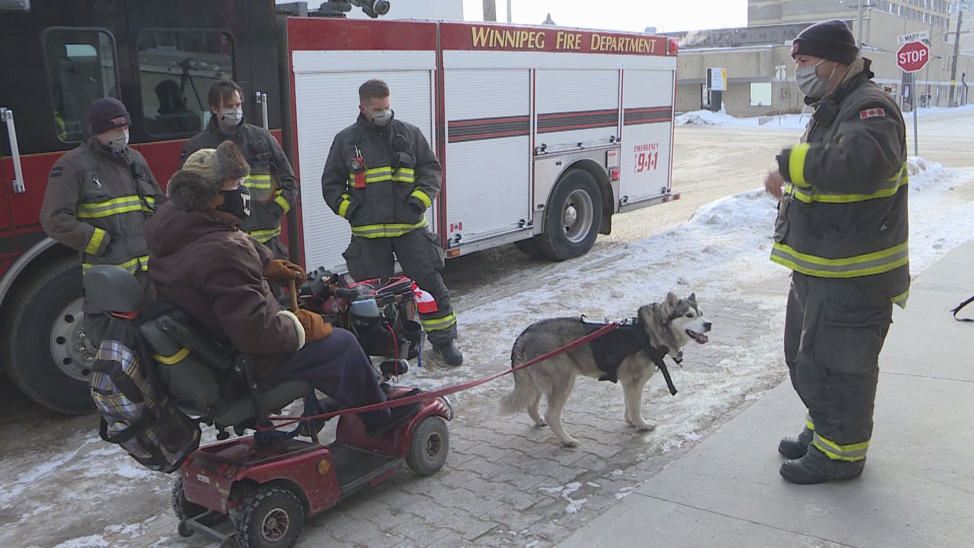 “We were just finishing up at an incident on Broadway and Edmonton and this dog was running by off leash and a Samaritan was chasing it,” Winnipeg Fire Department acting captain Dan Baril said.
