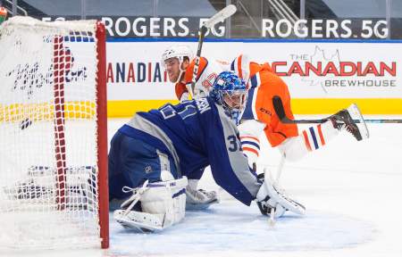 Both goalies made huge saves in the third. Mikko Koskinen dove to make a glove stop on Mitch Marner halfway through the period. With 10 seconds left, Archibald had an open look on a two-on-one, only to be denied by Andersen.