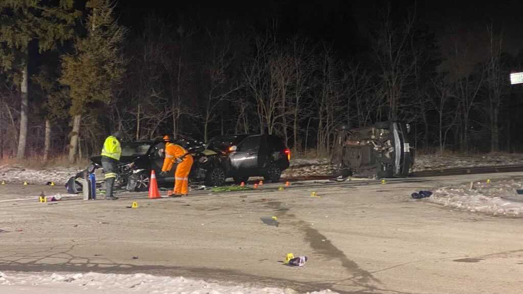 “Shortly after these two vehicles collided, a 2010 Land Rover being operated by 56-year-old Cambridge male then collided with the two vehicles at the intersection.”