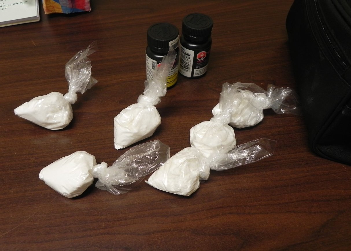 In a tweet Wednesday, Manitoba RCMP said the small black bag containing two packs of cigarettes, two bottles of pot pills, and six individually-wrapped bags of cocaine was found at a gas station in Ashern, Man., on Monday.