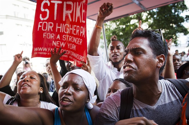 Terrance Wise has two jobs in Kansas City — one at a burger joint, a second at a pizza restaurant — but he says his paychecks aren’t enough to buy shoes for his three daughters and insure his 15-year-old car. So he decided to draw attention to his plight: He walked off work in protest.