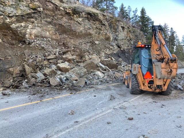 The roadway was shut down around 3:15 Wednesday afternoon after a rockslide scattered boulders and debris right across the road.