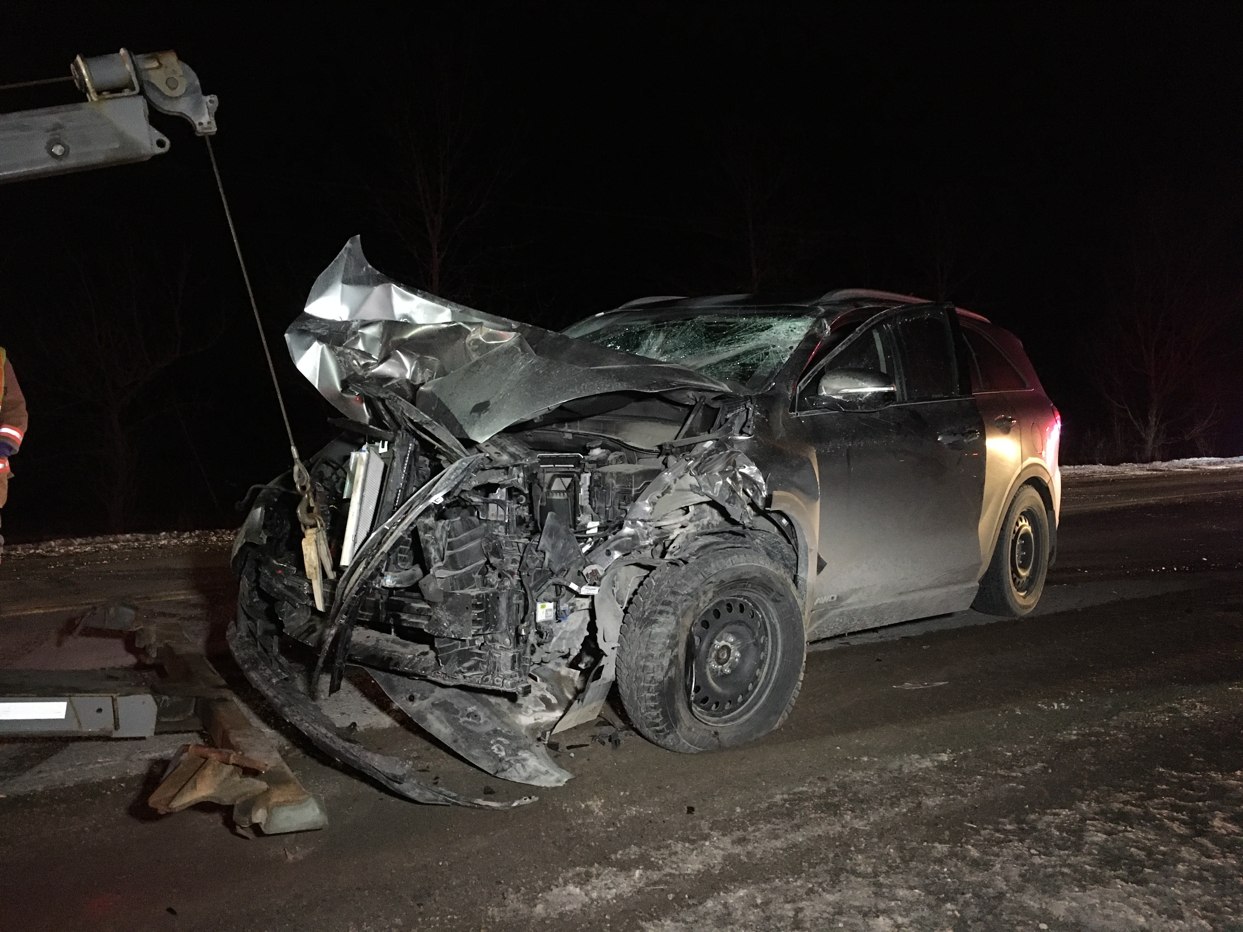 City of Kawartha Lakes fire officials on scene confirmed the truck was backing into the driveway when the SUV struck the trailer head-on, smashing the windshield. Airbags were deployed.