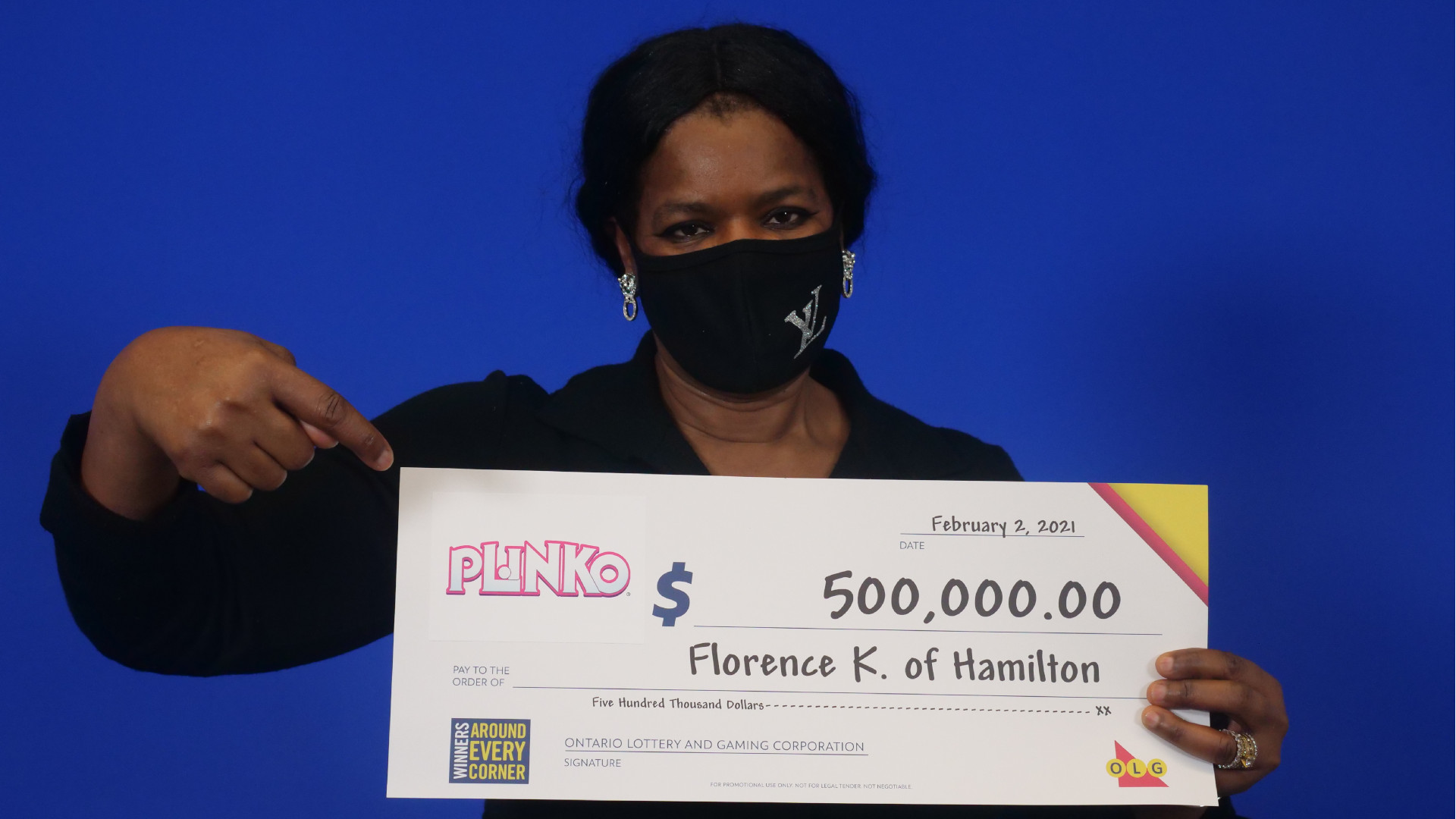 Hamilton’s Florence Kalu appeared to be more than excited after dropping her only chip into the only $500,000 slot playing the Ontario Lottery and Gaming Corporation’s (OLG) Plinko.