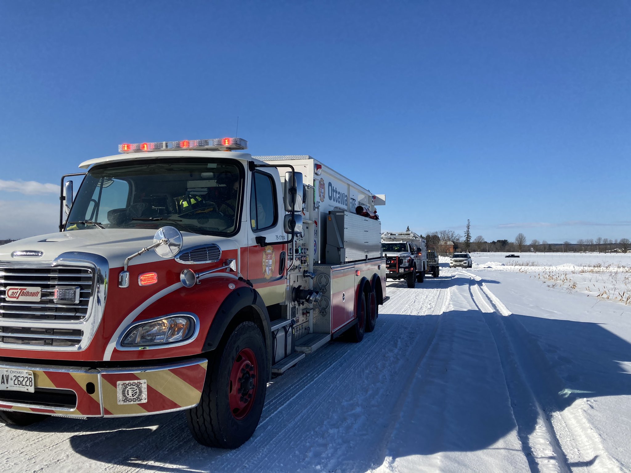 Ottawa Fire Services said their crews arrived on-scene and located the aircraft in a small wooded area south of the airport. The plane was on fire, OFS said, and the flames were doused with portable extinguishers and finished off with a hose line.