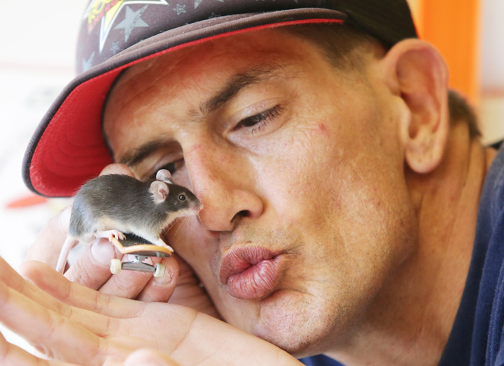 “I’ve never lost a mouse in 10 years of teaching them to surf and skate,’ he told the Gold Coast Bullentin.