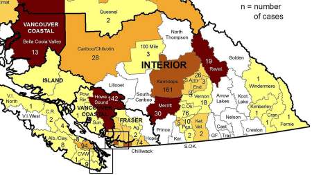 - Thompson-Cariboo-Shuswap: 261 cases (307)