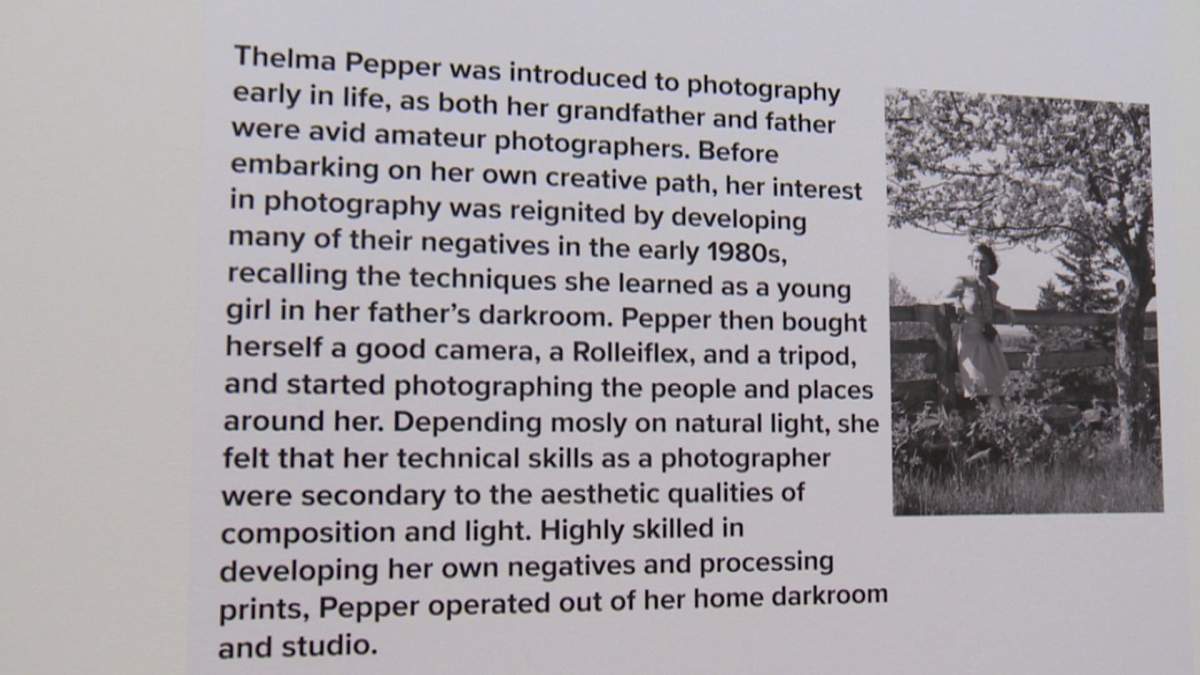 It features the work of local resident and photographer, Thelma Pepper, who passed away at the age of 100 in December.