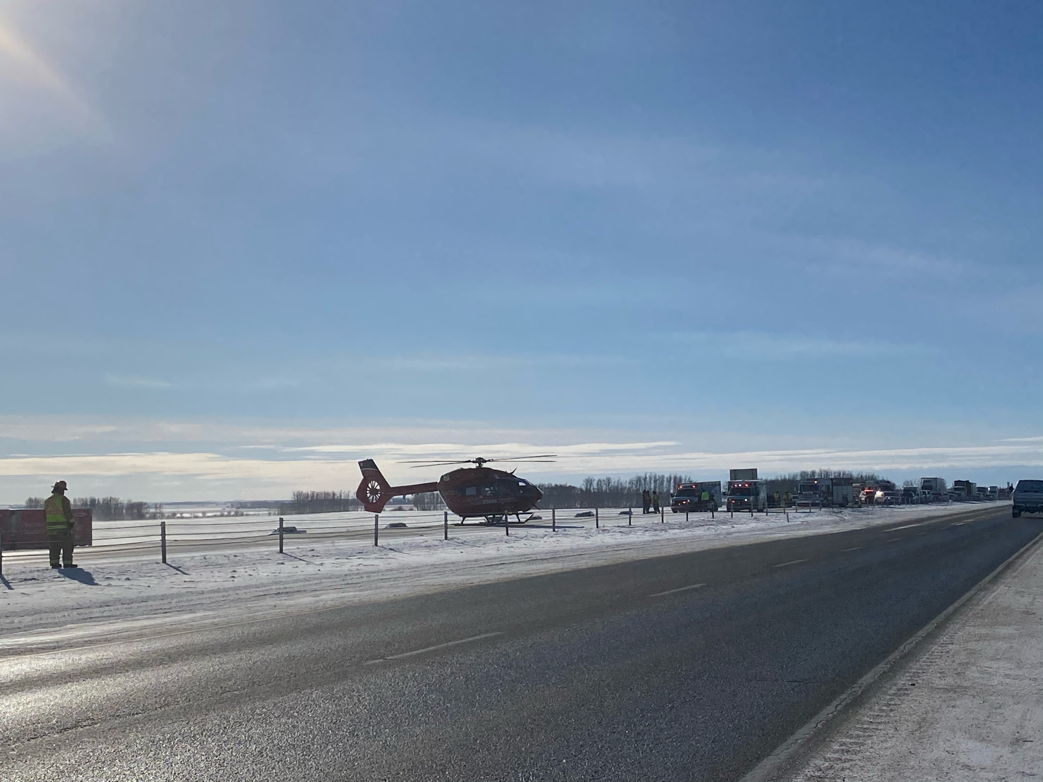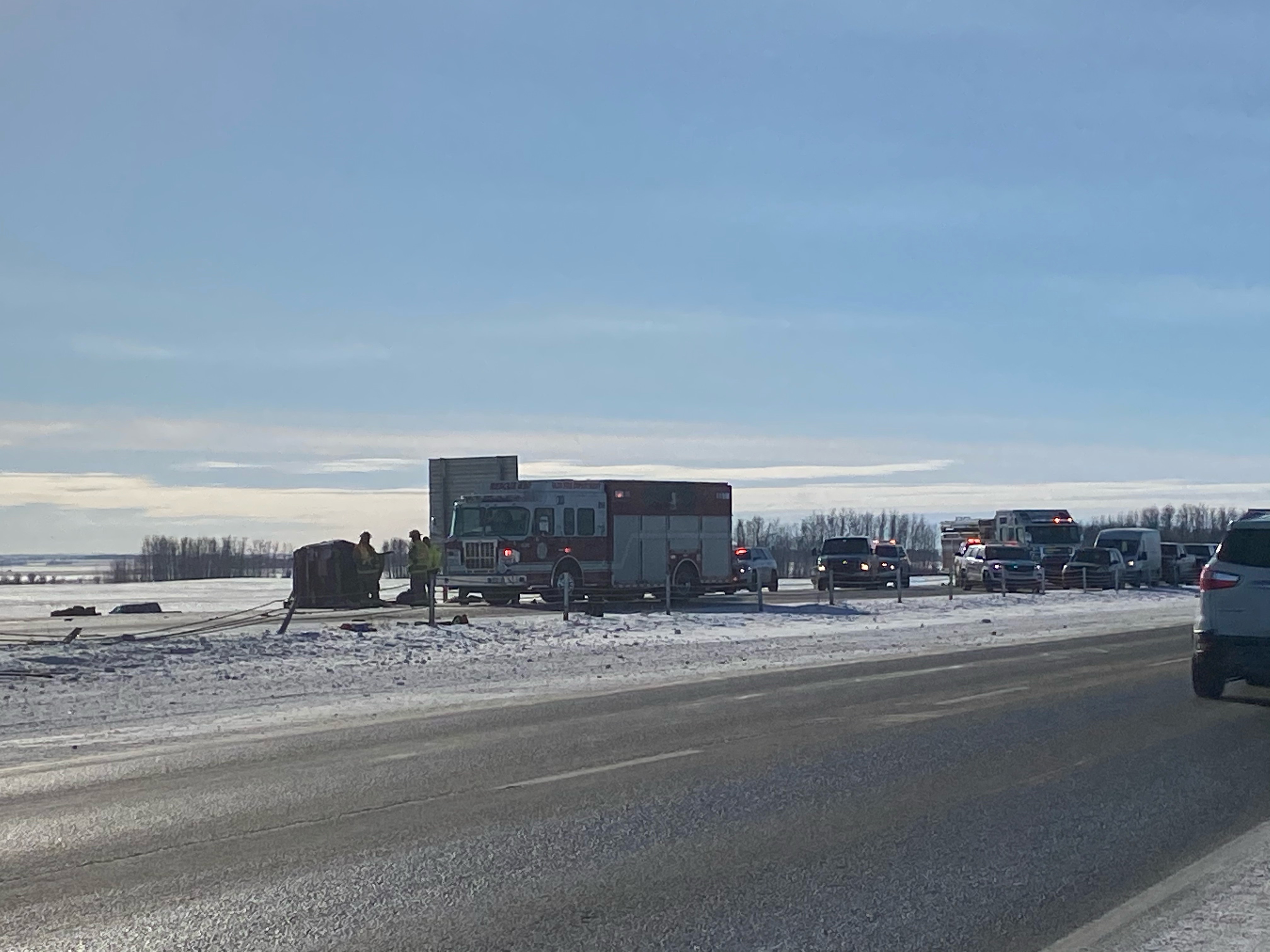 The northbound lanes of the highway were closed for several hours Wednesday morning. Traffic was rerouted at the Didsbury overpass (Highway 582).