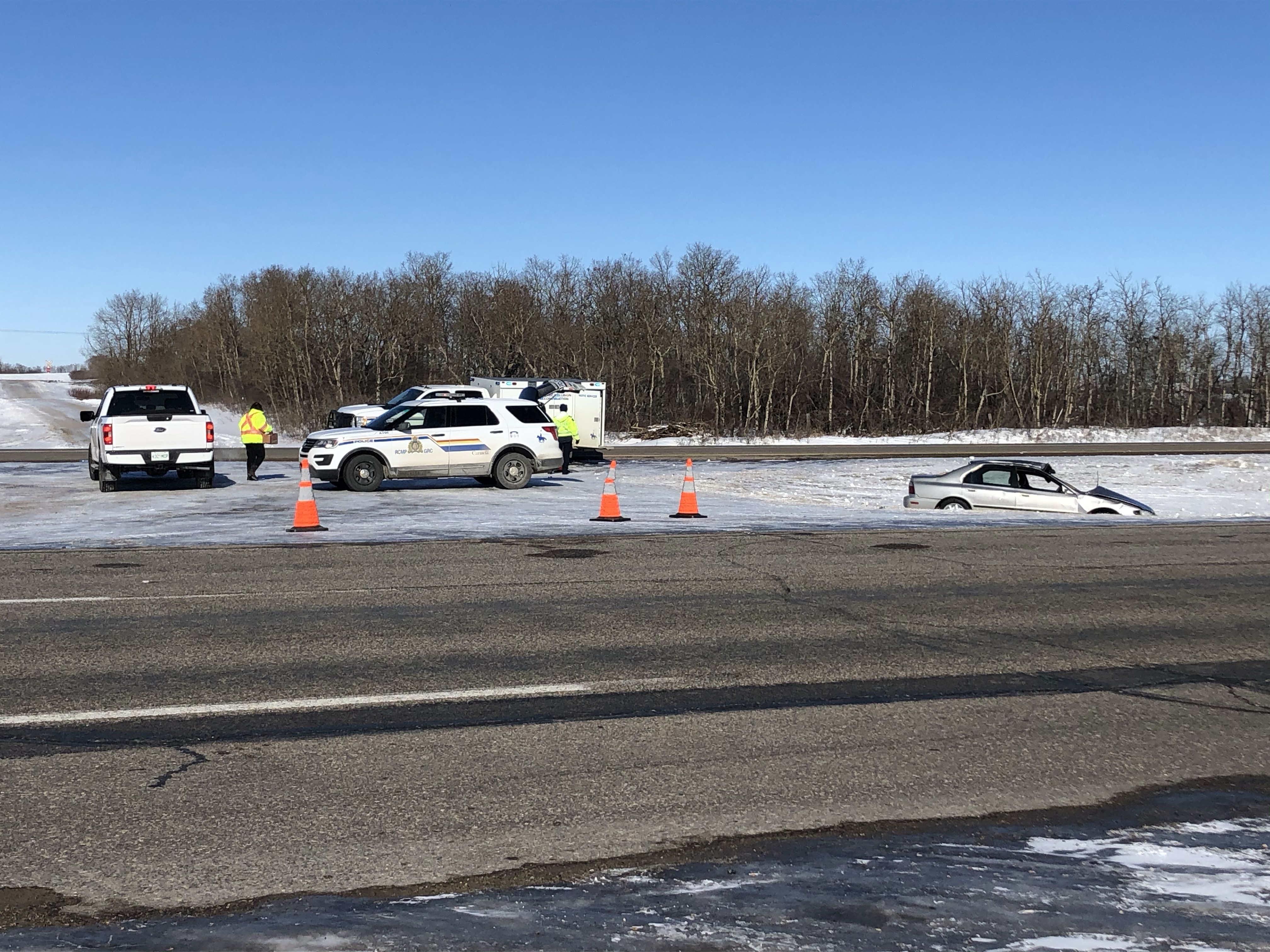 White Butte RCMP are on the scene of a serious single-vehicle collision on Highway 1 west of McLean, Sask., approximately 40 kilometres east of Regina.