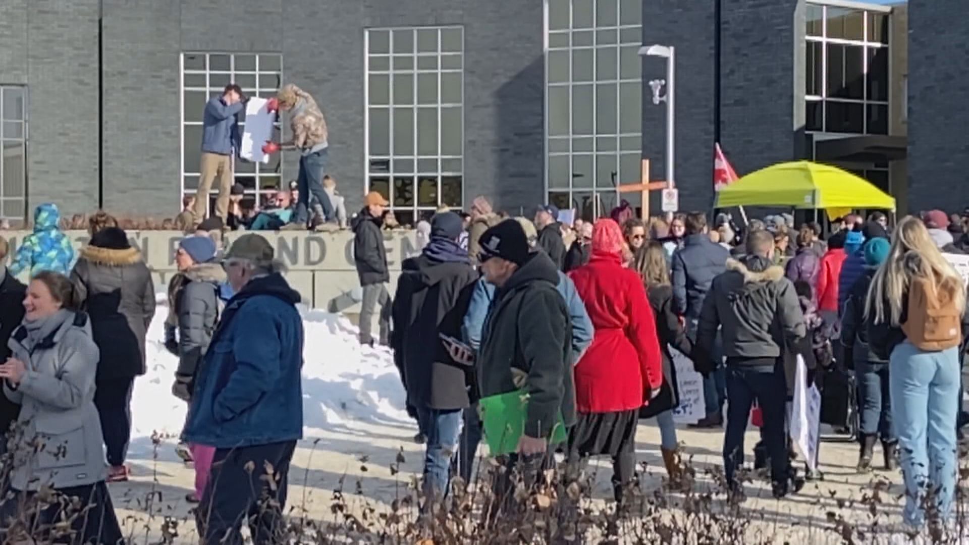 A separate COVID-19-related protest focused on restrictions was held in Edmonton at the legislature on Saturday.
