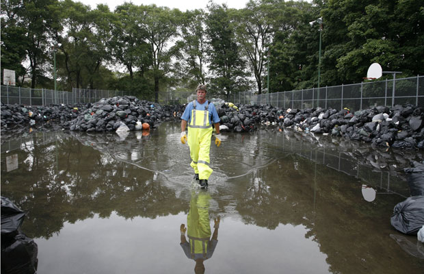 As for the inches of standing water accumulating in the basketball courts and hockey arenas in the last 24 hours due to heavy rainfall, Geoff Rathbone, Toronto’s general manager of solid waste, said that’s exactly what’s supposed to happen.