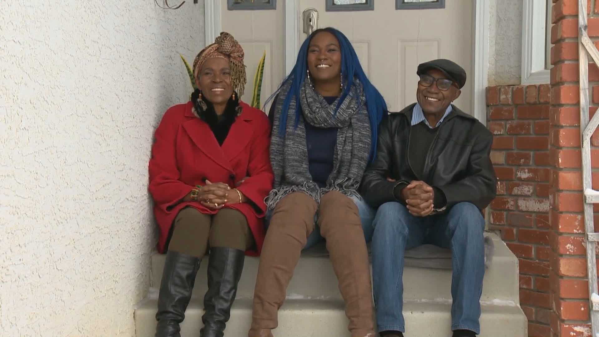 “Yes, that’s how it happened — at church,” Nwofor says, and she squeezed in between her parents during an interview on the front step of the house, her arms wrapped around both of them.