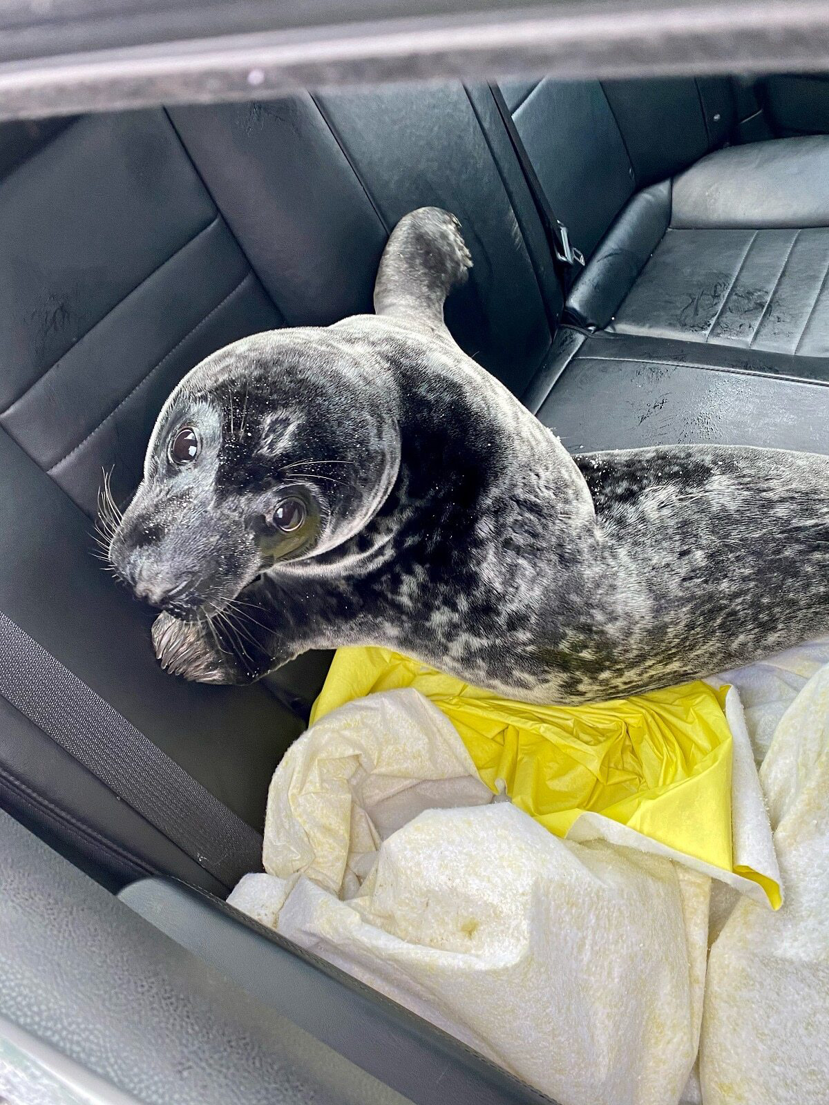 She says police officers arrived minutes later and managed to wrap the seal in a tarp and get it into the back of their cruiser.