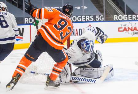 William Nylander put the Leafs ahead on a power play with 5:23 to go in the first. Just 1:13 later, Mitch Marner snapped a shot past Mike Smith to make it 2-0.