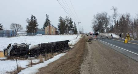 Emergency services were called to County Road 27 between Line 8 and Line 9 for a collision at 7:10 a.m.