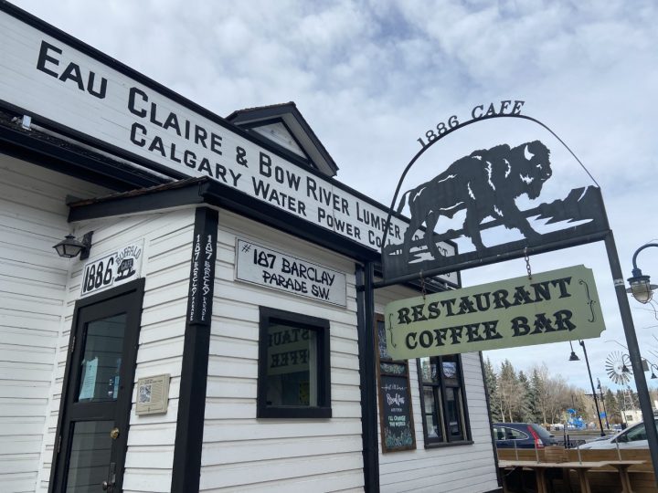 The café is located in the Eau Claire & Bow River Lumber Co. building on Eau Claire Plaza.