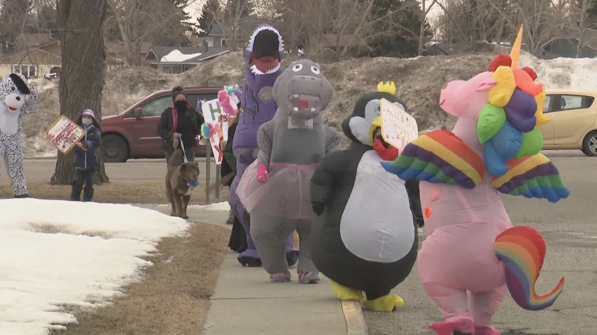 On Saturday, a parade, led by a unicorn named Miss Sprinkles, turned some heads as it marched towards Calgary’s Father Lacombe Care Centre.