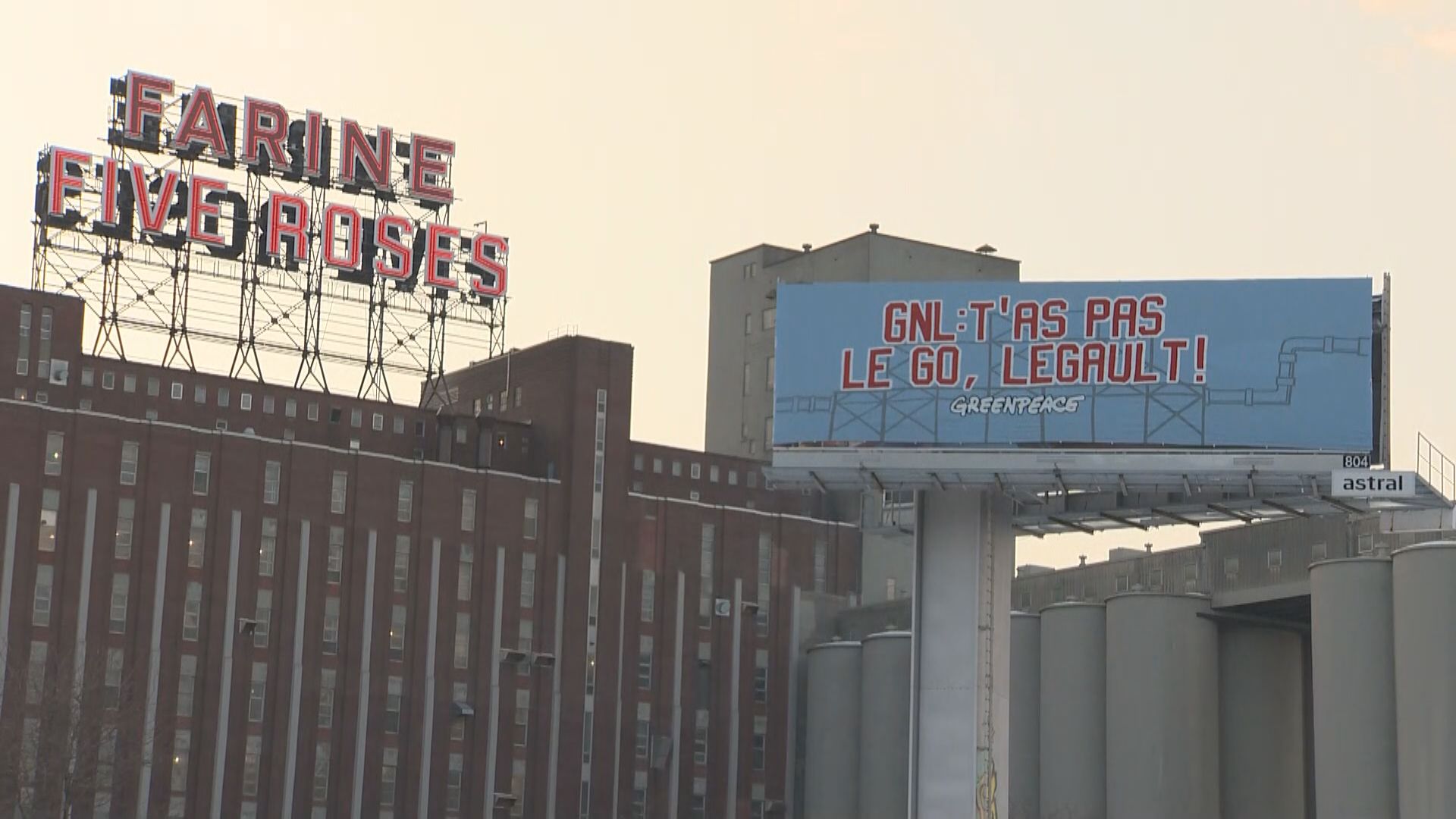 Across Quebec, under darkness, members of Greenpeace commandeered six billboards, recovering them with political messages against the GNL Quebec pipeline project.