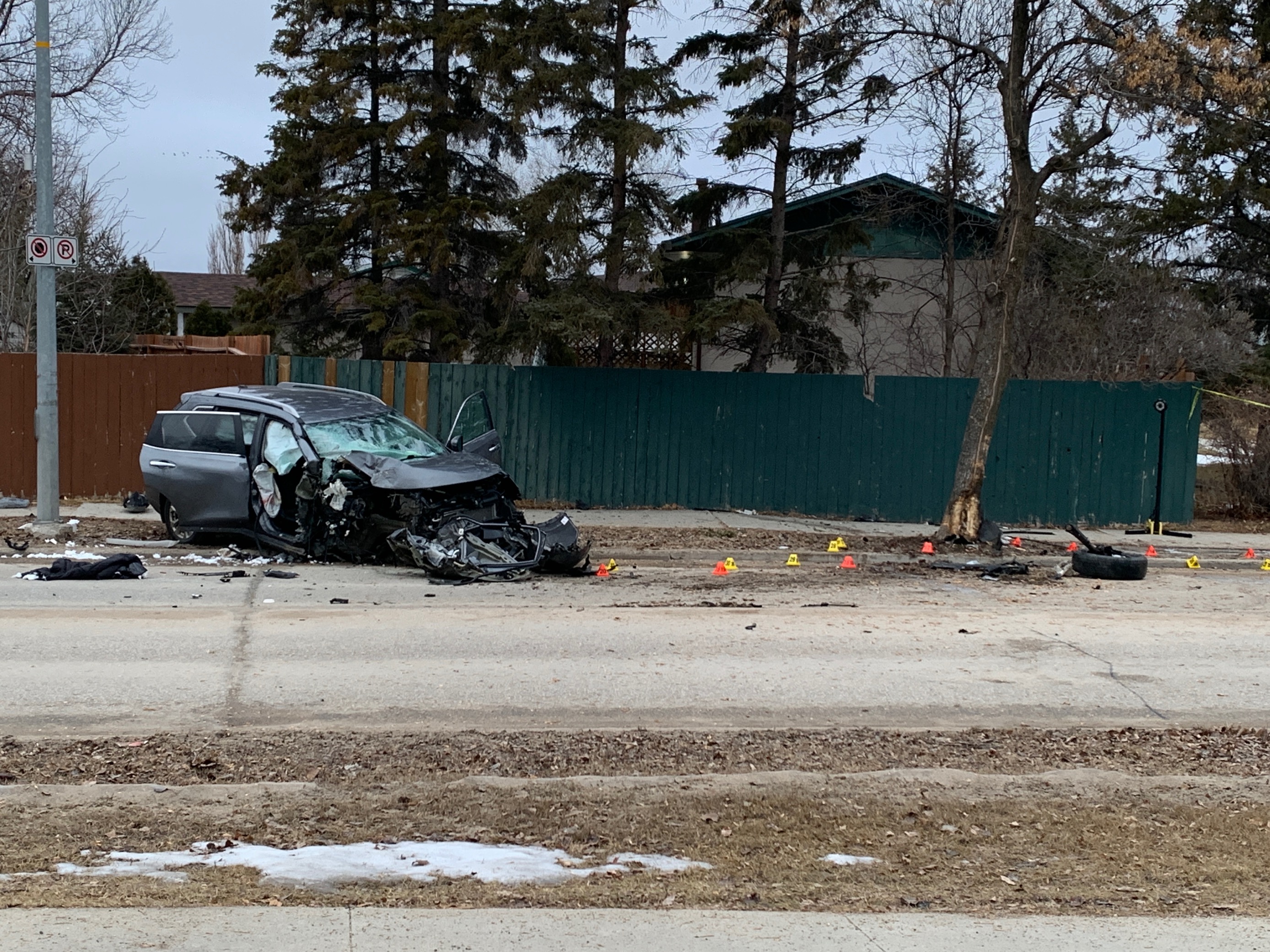 The grey SUV ended up on the sidewalk on Dale Boulevard, with its front and passenger sides crushed. Deployed air bags could also be seen in the wreckage.