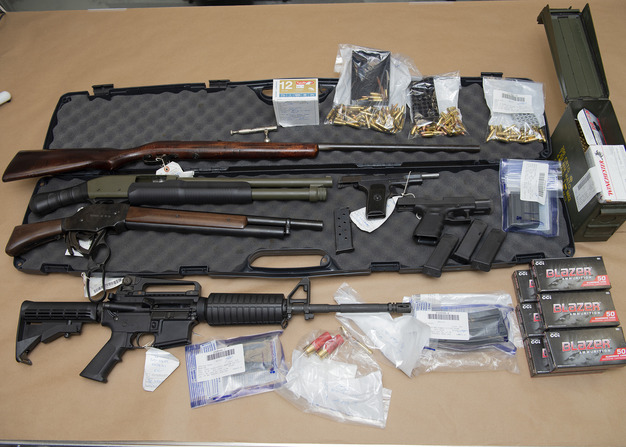 Police said they searched a residence on William Borrett Terrace Thursday night and seized a number of firearms and ammunition.