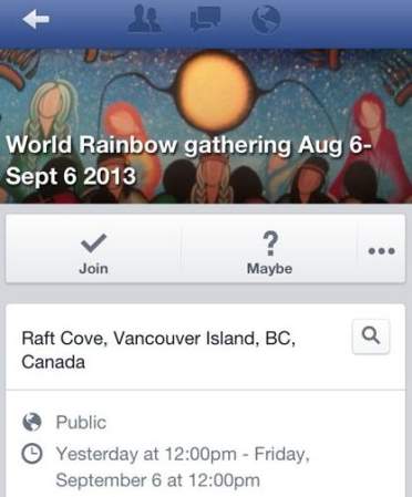 The World Rainbow Gathering event did have a Facebook page, which was made private sometime on Wednesday night or Thursday morning, as Wickstrom says people were starting to leave messages telling attendees not to come.
